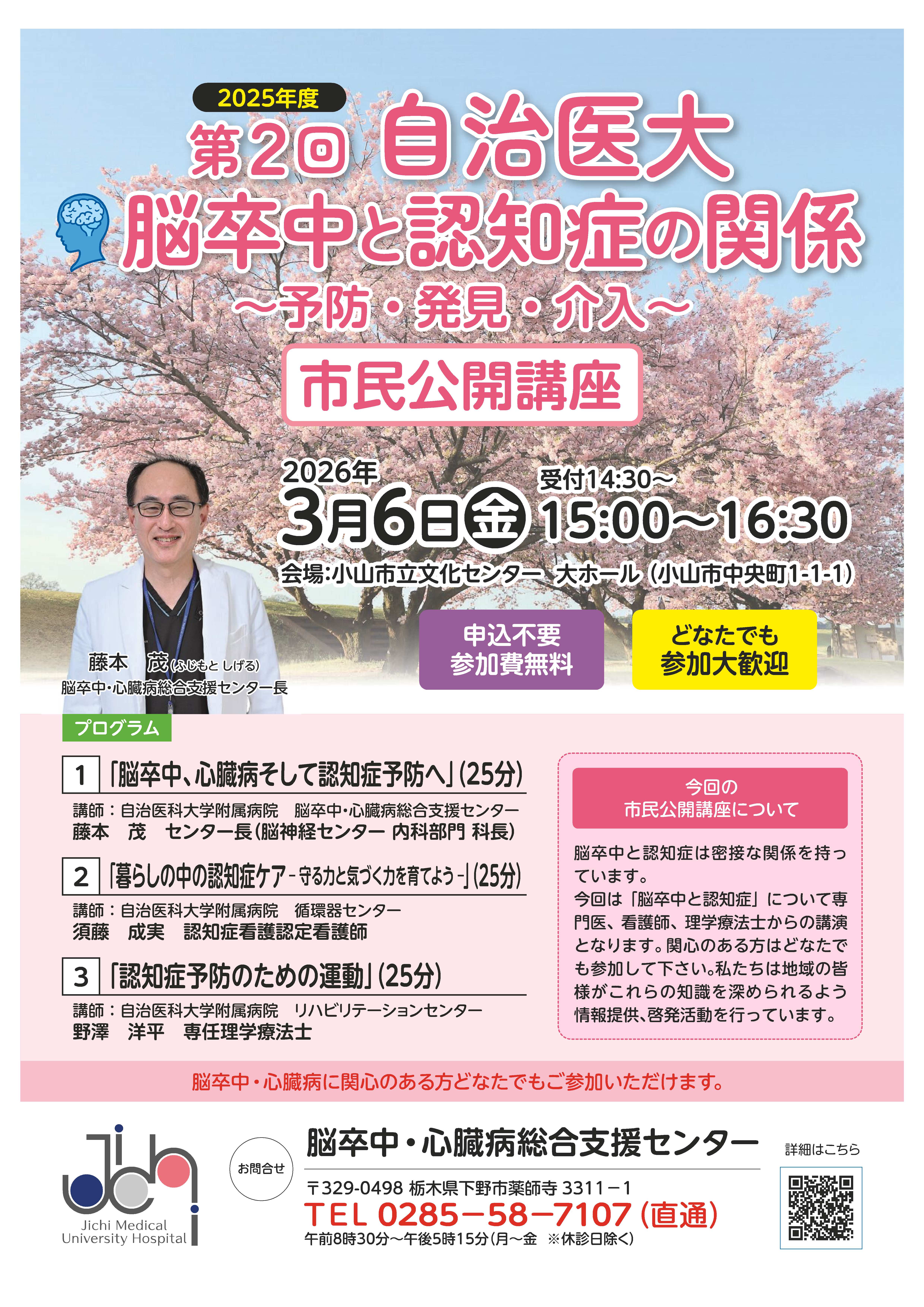 自治医科大学 脳卒中・心臓病 出張市民公開講座を実施いたします。