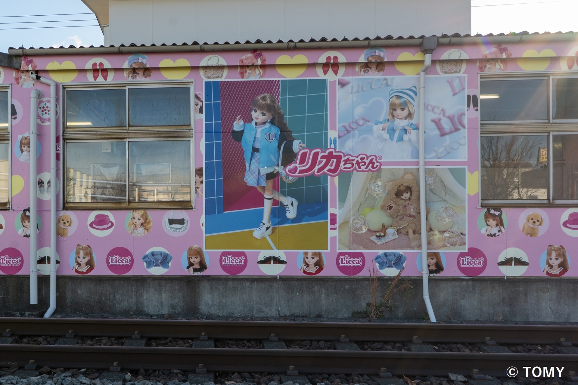 11月27日(木)、壬生町合併70周年を記念し、東武鉄道株式会社と協働で東武宇都宮線のおもちゃのまち駅の駅舎と待合室に「おもちゃのまち」らしいラッピングを施しました。