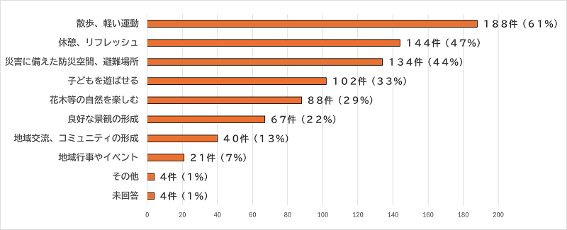 Q4 これから整備される公園にどのような役割や用途(公園でできること)を期待しますか。主なものを3つまでお選びください。